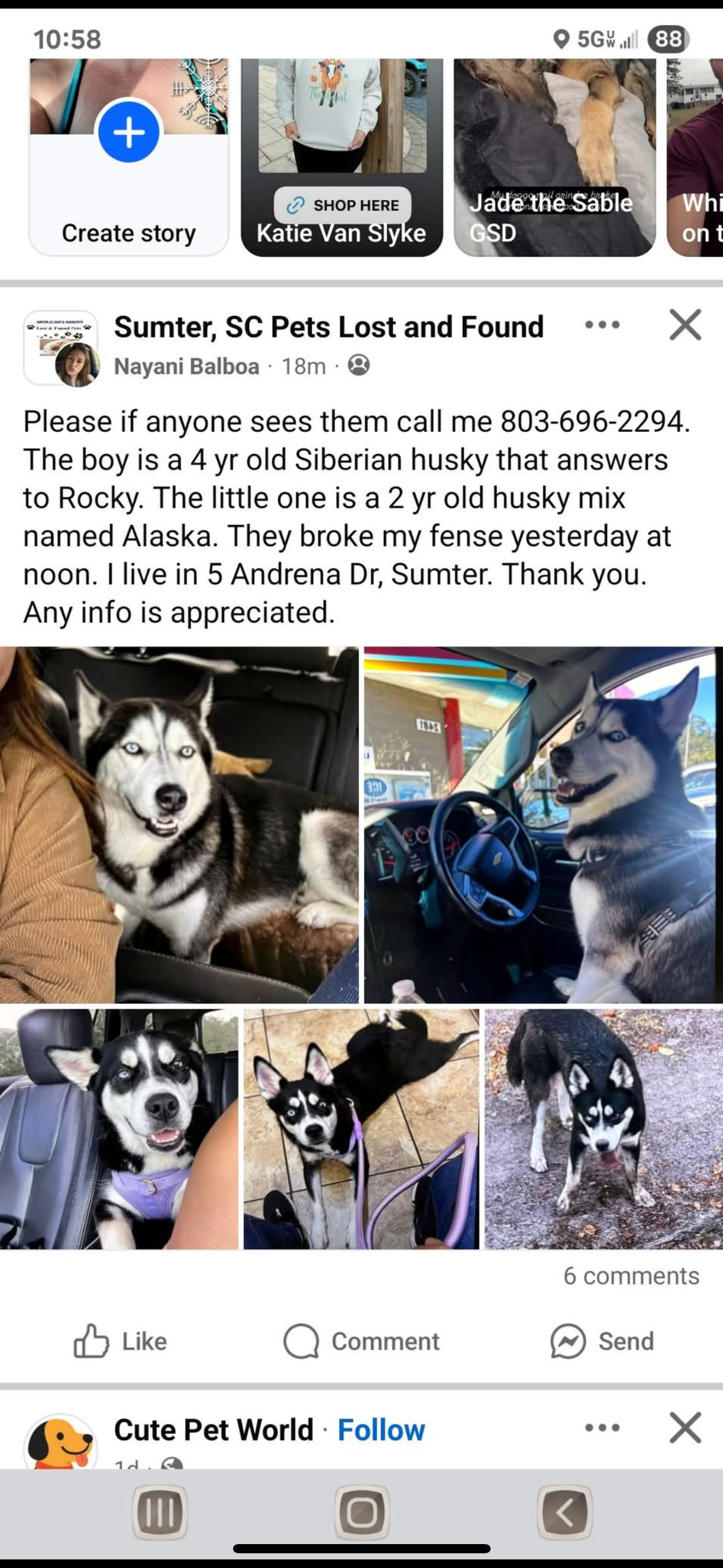 Nayani Balboa and her husband, known on Facebook as Tr Sanz, own 5 dogs, at least 3 possibly 4 being huskies. (Against the terms of there home lease) The dogs repeatedly escape as seen on the Facebook posts and this time, the dogs went on a killing spree thru a distant neighborhood after Vanessa McInnis thought she was helping by picking them up in the middle of town and bringing them to an abandoned home next door to her. She was unable to secure them and they wreaked havoc killing people’s pets left and right. Neither the dog owner nor Vanessa own up to making bad decisions. They continue to insist the dogs are nice and friendly and they were heroes that day. It was documented with the Sumter city police and is being assessed they animal control currently. It will be a civil matter. My cat was killed in my own back yard by these two dogs and the lady two doors down lost 3 kittens out of her garage. There were many other victims.